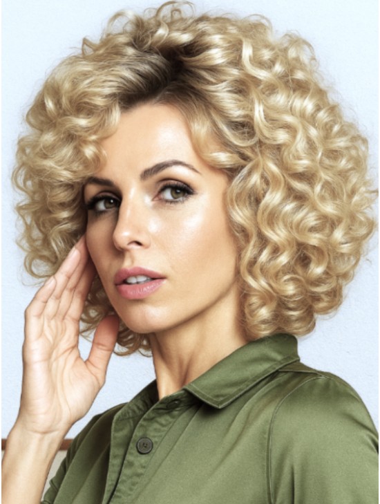 This chin-length curly wig is flirty, voluminous, and easy to style. The expertly layered cut enhances the curl pattern, giving a soft and natural bounce.