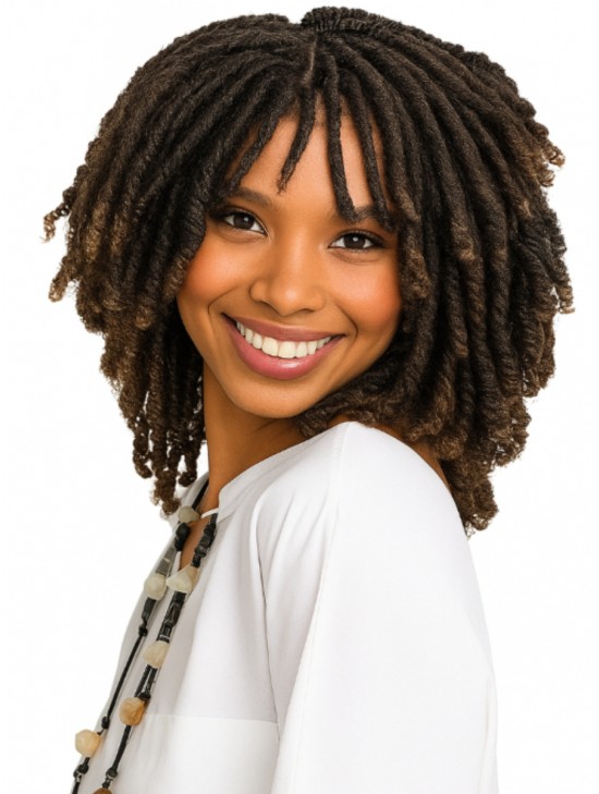 African-Inspired Braid Style: This 12-inch wig combines classic twist braids with soft curls for a modern African-inspired look perfect for fashion-forward styling.